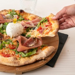 Con le nostre nuove basi pizza a lunga lievitazione e lavorazione artigianale, potrai preparare delle pizze squisite in soli 5 minuti. Realizzate con farina di grano tenero tipo “0”, farina di semola di grano duro e olio extravergine di oliva, per un impasto morbido, fragrante al palato ed altamente digeribile.