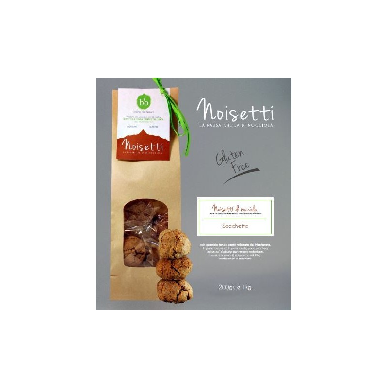 Solo nocciole tonde gentili trilobate del Monferrato, senza conservanti , coloranti o additivi, in parte tostate ed in parte crude, poco zucchero, ed un po’ d’albume, per renderli morbidissimi.