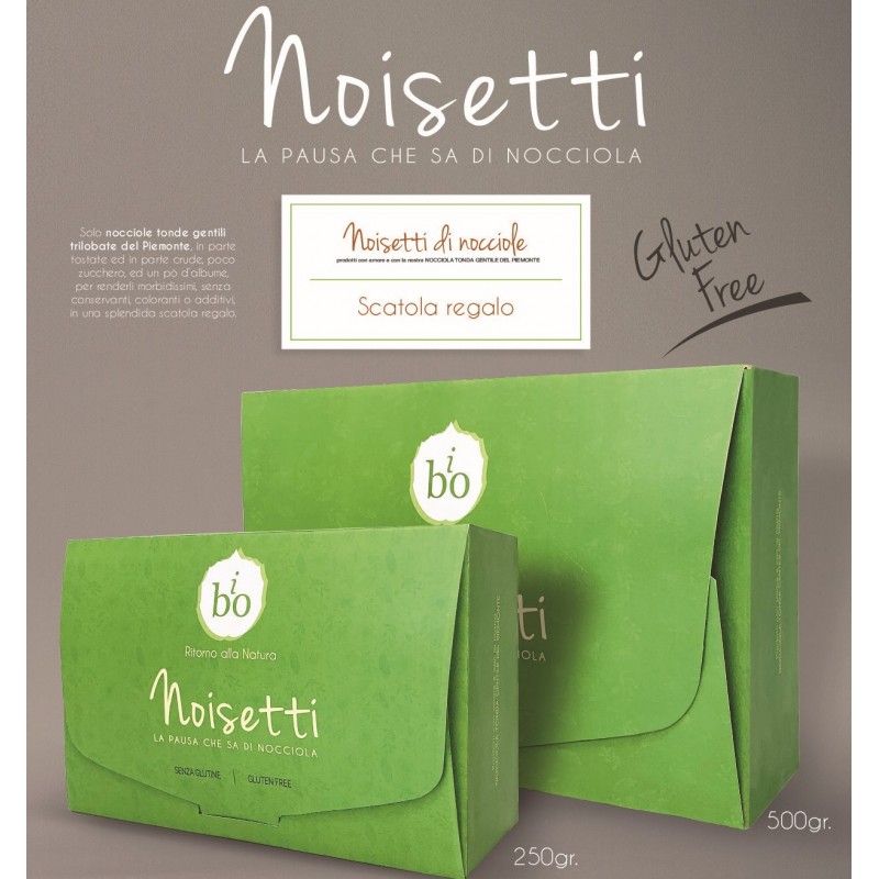 Solo nocciole tonde gentili trilobate del Piemonte, in parte tostate ed in parte crude, poco zucchero, ed un po’ d’albume, per renderli morbidissimi, senza conservanti, coloranti o additivi, in una splendida scatola regalo.