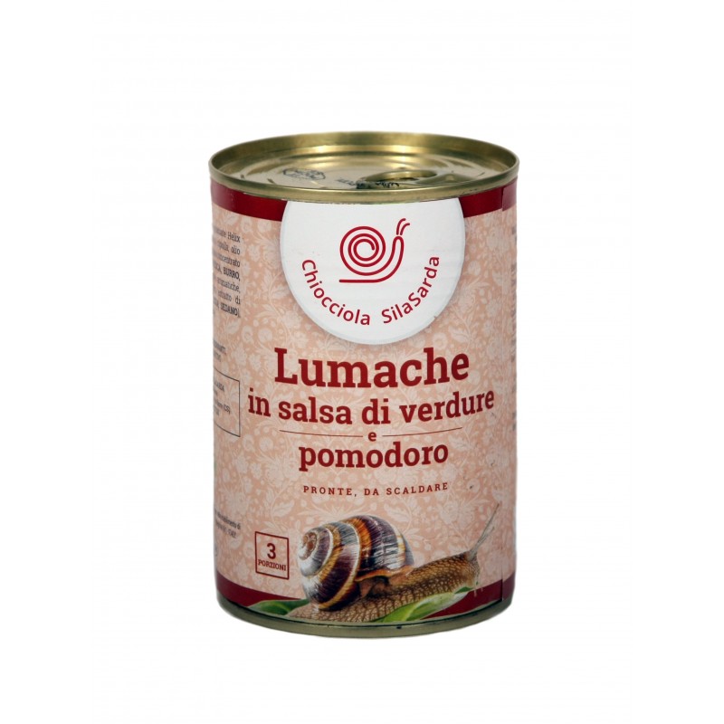 50% Carne di lumaca Helix , passata di pomodoro, cipolla, olio extra vergine di oliva , doppio concentrato di pomodoro, Panna, Burro, amido di riso, sale, erbe aromatiche , preparato di brodo con estratto di proteine vegetali, soia, sedano, pepe, spezie.