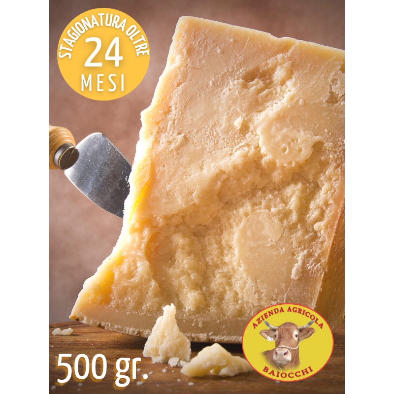 Parmigiano Reggiano Vacche Rosse, stagionato da 24 e i 27 mesi, porzionato in punte da 500 gr., sottovuoto.