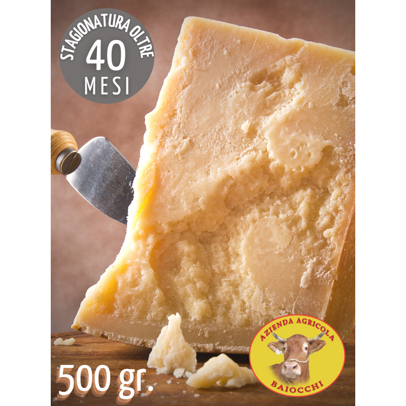 Parmigiano Reggiano Vacche Rosse stagionato da 40 mesi porzionato in punte da 500 gr. circa, sottovuoto.