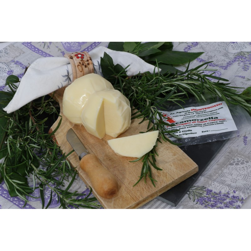Formaggio di pasta filata ottenuta dalla lavorazione del latte di capra (40-45%) e latte di mucca (55-60%) miscelati. Grazie alla sua freschezza, il sapore e’ dolce e delicato con ricordi aromatici di latte caprino. Ottima per accompagnare insalate, alla piastra o negli spiedini, o semplicemente accompagnata da composte o miele di castagno. Formelle da circa 300 gr.