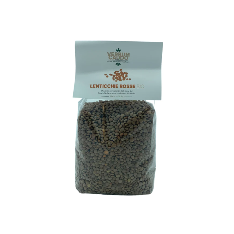 Le Lenticchie Rosse Bio di Verbumcaudo sono preparate essiccando i legumi coltivati in pieno campo sulle Madonie, nel cuore della Sicilia, con metodo biologico e senza concimi o diserbanti chimici.