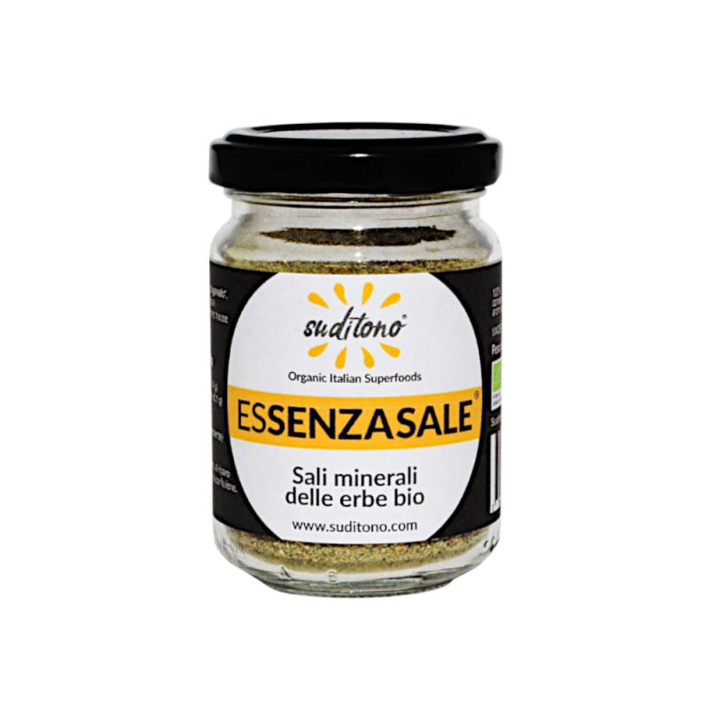 Una minima quantità di ESSENZA SALE, da distribuire quotidianamente nei pasti, garantisce l’assunzione della dose giornaliera consigliata di sali minerali, utili per l’organismo e la salute.