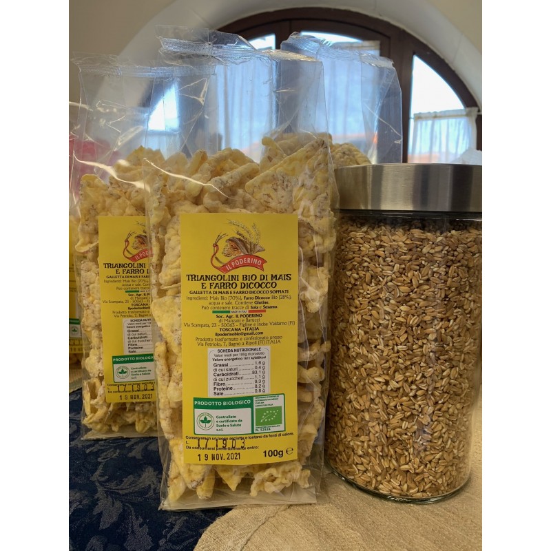 Gallette triangolari croccanti di mais e farro soffiati 100gr