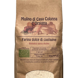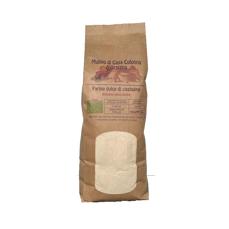 Farina di castagne, biologica, prodotta da castagneti selezionati di nostra proprietà. Prodotto ottenuto attraverso un processo totalmente interno, dalla raccolta delle castagne fino al confezionamento della farina. Le castagne sono raccolte a mano, seccate con l'utilizzo di metati del 700 di nostra proprietà. Le castagne poi sono selezionate a mano, e vengono scartate quelle non ottimali, alzando la qualità del prodotto fino che risulta avere proprietà organolettiche da top di gamma.