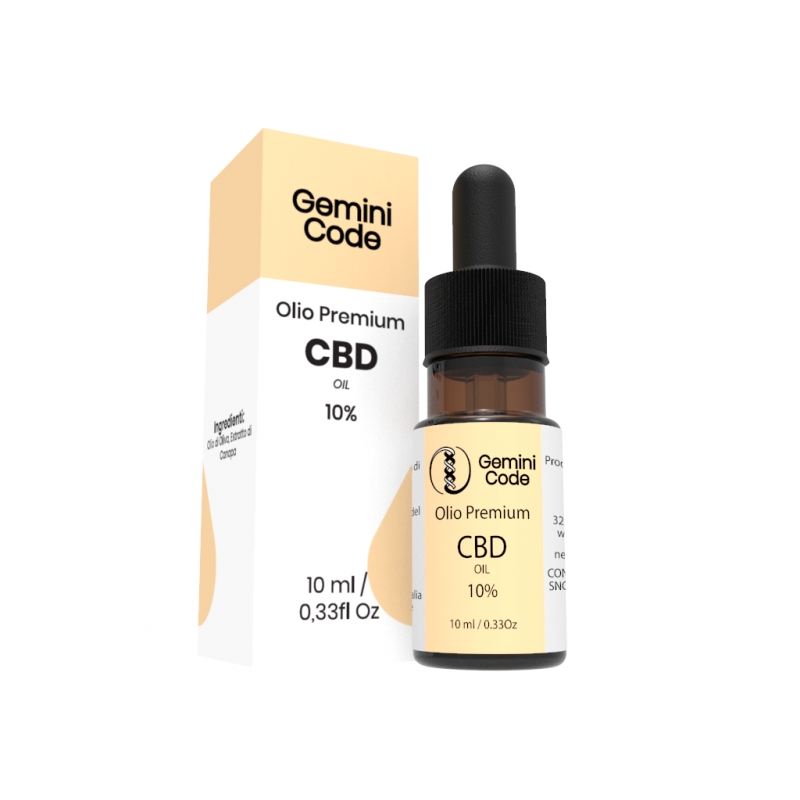 L'olio CBD di Gemini Code è confezionato in un pratico flacone contagocce, per dosare il prodotto senza problemi.